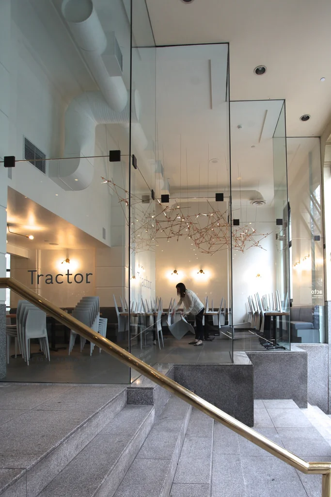Permanent light installation commissioned to Tangible Interaction for the new Downtown location of ''Tractor foods'' in Vancouver.